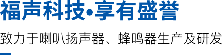 泰州福聲電子科技有限公司主要生產聲學器件,有著豐富的研發(fā)生產銷售經驗, 我們主要生產喇叭、揚聲器、壓電式蜂鳴器、電磁式蜂鳴器、貼片式蜂鳴器等電聲元器件。